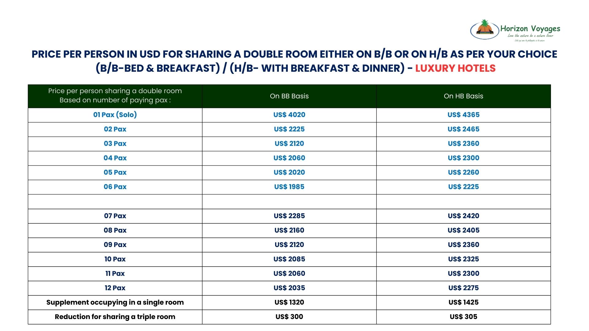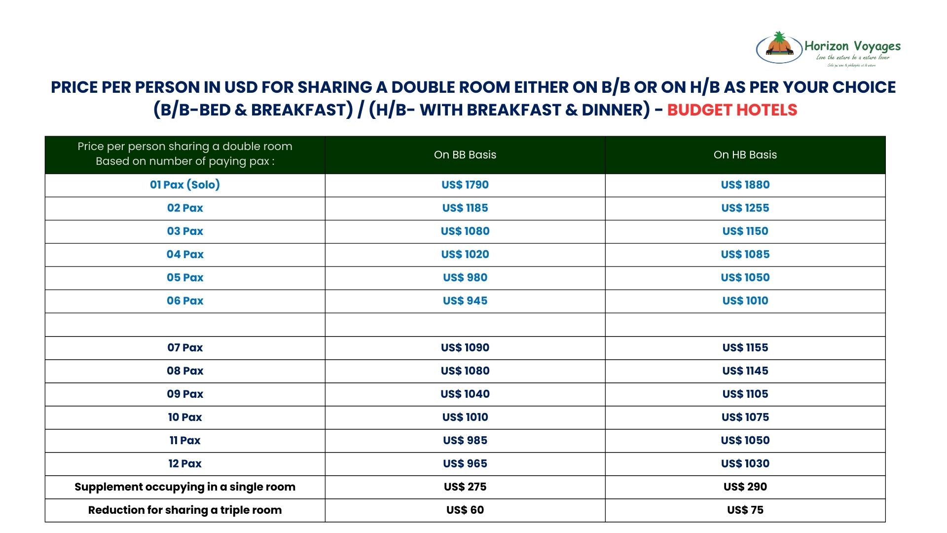 • For pricing information for groups of more than 12 adults for Budget Hotels/ Budget Plus Hotels/ Mid Tier Hotels/ Luxury Hotels, please contact us directly.