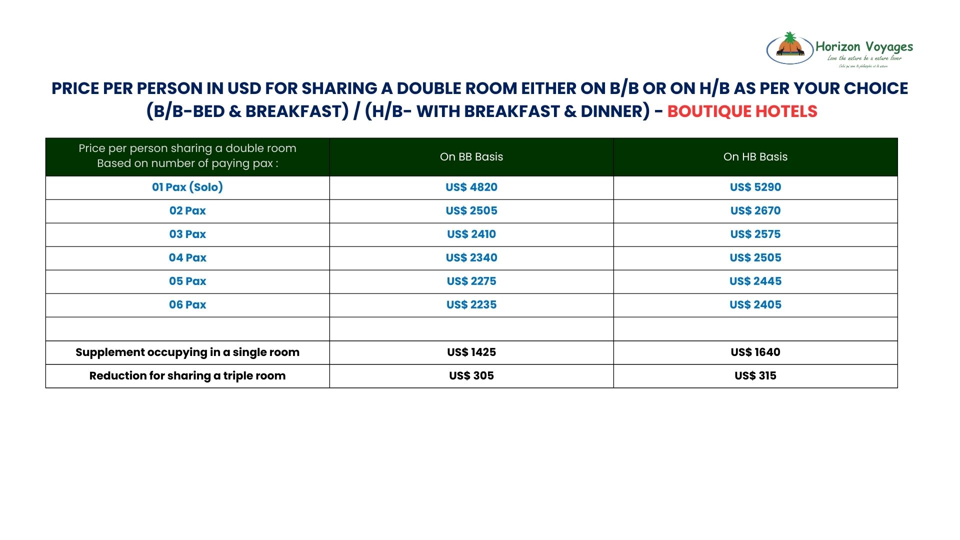 Rates Provided Below Are Quoted on a Price Per Person Sharing a Double Room.