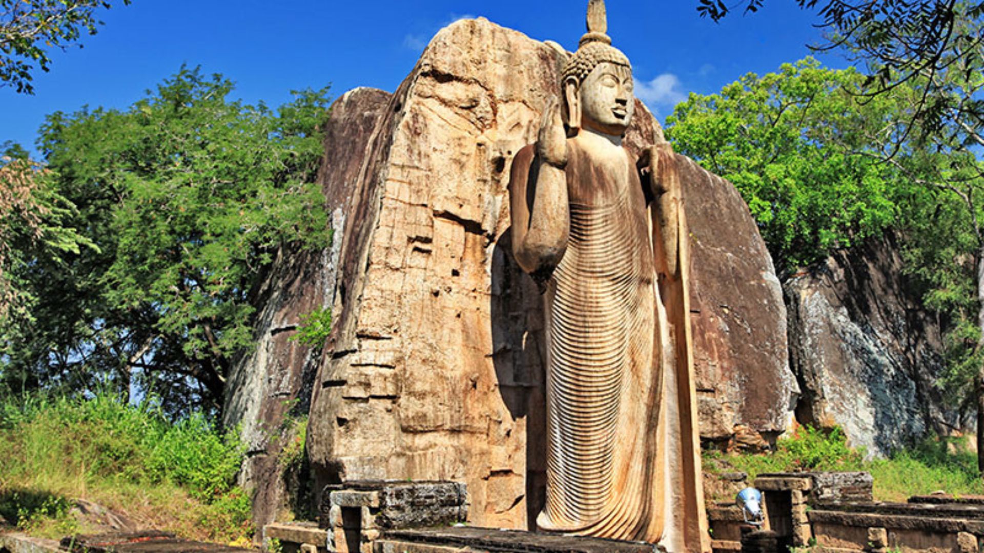On the way to Sigiriya, visit the magnificent 15-meter Aukana Buddha, carved from living rock.