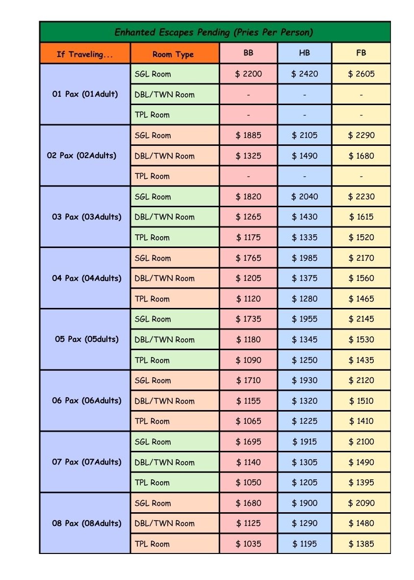 - The above prices does not include special season supplements such as Kandy Perahera/Christmas Eve/New Year Celebration.
