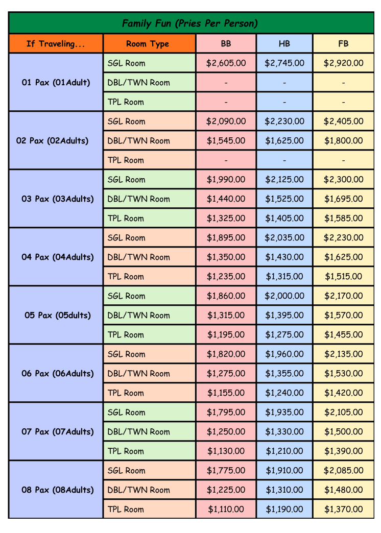 - The above prices does not include special season supplements such as Kandy Perahera/Christmas Eve/New Year Celebration.
