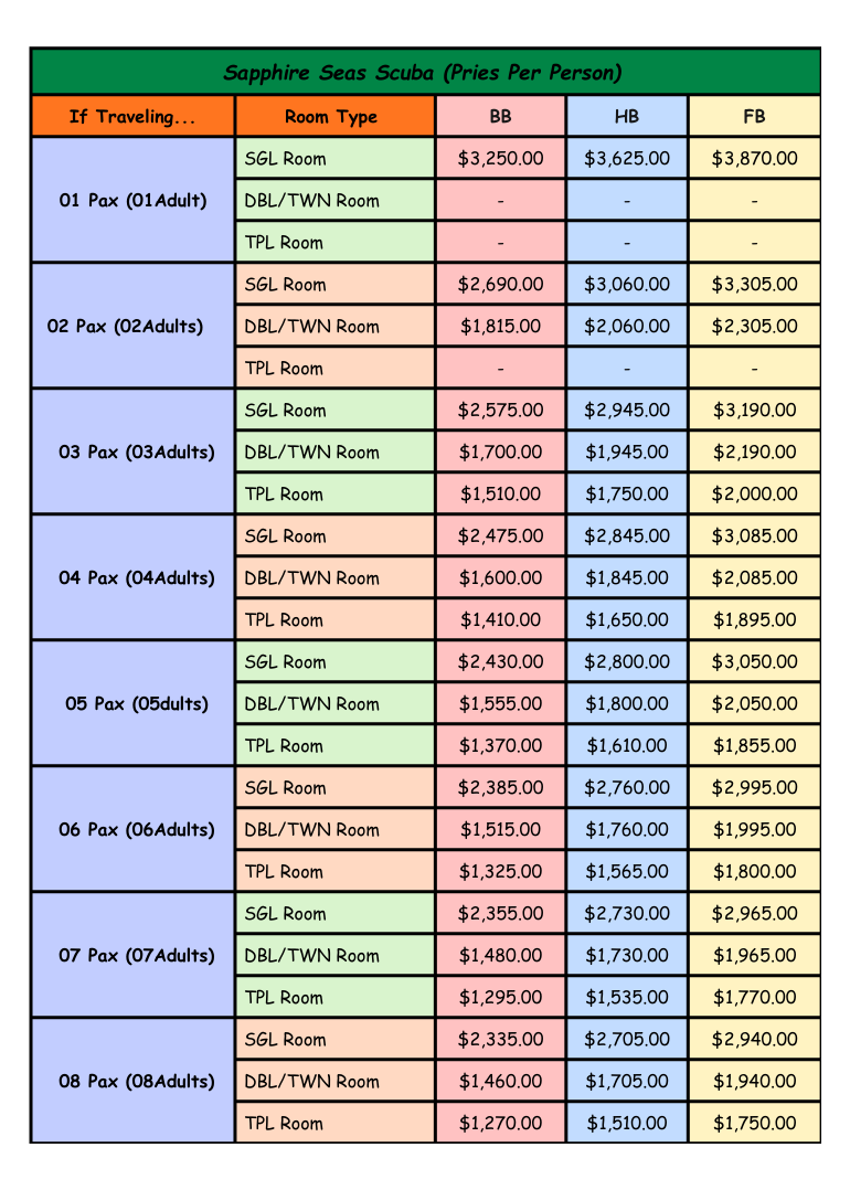 Rates provided below are quoted on a Per person Basis.