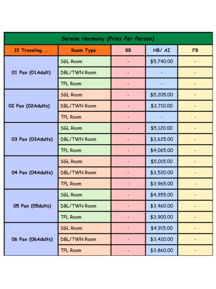 Rates provided below are quoted on a Per person Basis.