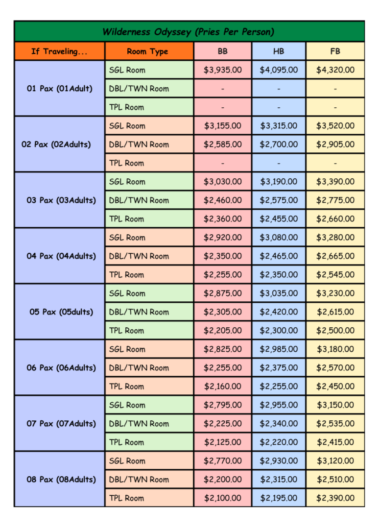- Service of an English-speaking chauffeur guide(Included their accommodation and meals)